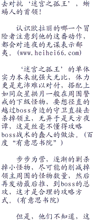 在它的周围,有好几对的蜥蜴人小队盘踞着,这些怪物的仇恨值是联动的,也就是说一旦触发了一只怪物,就会迎接整个草原蜥蜴人部落的围攻,庞大的数量差距会令人难以支拙。