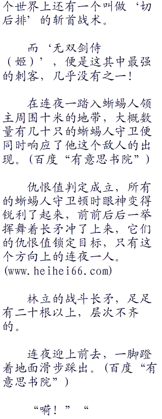 ‘无双剑侍(姬)’具有‘决斗达人’的被动能力,在交战的时候可以源源不断的恢复体力,好比某些神明具有的特性是站在大地上可以源源不断的获得体力一样。