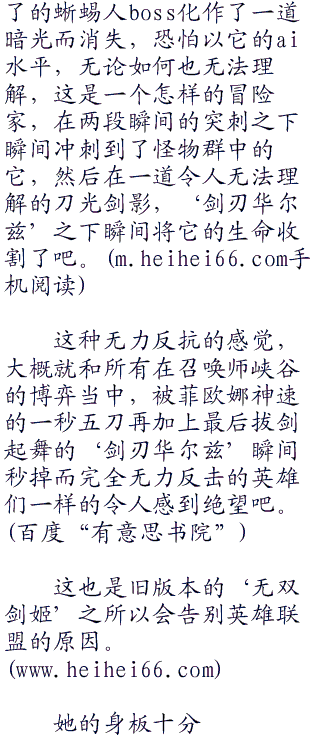 所能够目视的唯有残影与剑光,在高大的蜥蜴人boss身旁四周八方闪动着,即使是强而有力的领主,也无法在这无法锁定的剑刃圆舞当中,找出连夜的位置并加以反击,只是无力的在不断交错的剑光当中一次次的被切割开身体,直至华尔兹的结束。