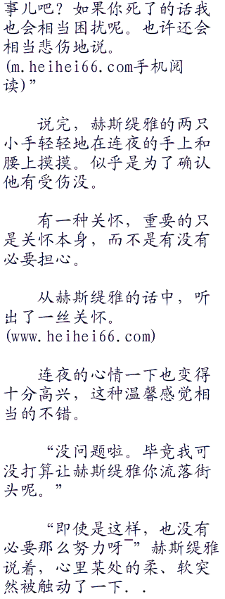 赫斯缇雅一边迎着连夜将他拉进房间内,一边像是抱怨一般的嘟囔道,但这种抱怨,换句话来说,也是一种纯粹的好意。