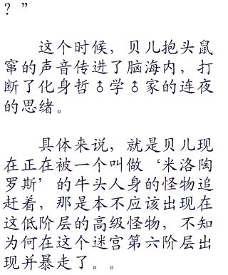 一周以后,贝儿在基础能力增长和胆子变大了点的情况下,地下城攻略进度也缓缓的推进到了第6阶层的魔影(dowsha)。