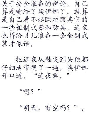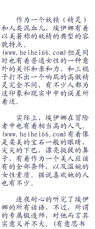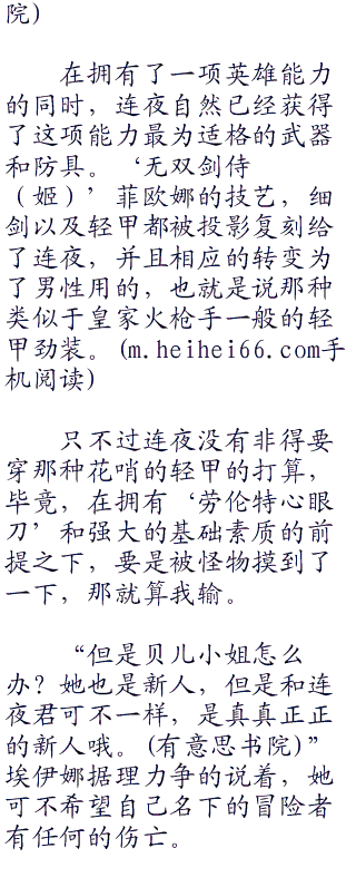 想到这些,埃伊娜神情一肃,看了看连夜身上轻飘飘的蓝白色军装,认真的说道,“连夜君,你现在,应该还没有专属的锻造师吧?接下去的地下城可是很危险的,没有很好的防具的话,就算武器再怎么锐