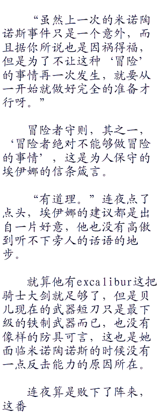 整个眷族的冒险者,也只有连夜和贝儿两人而已。算起来,一个是saber(剑士),另一个则是短刀使。