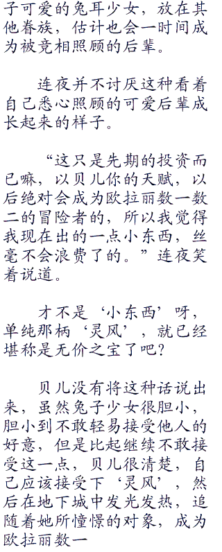 这种生性根固的手艺人劲儿,使她没有一丝让自己亲自动手制造的武器,也就是自己的孩子一般的存在输给其他武器的意思,因为那与她锻造师的原则相悖。