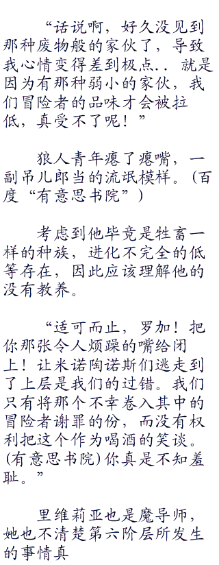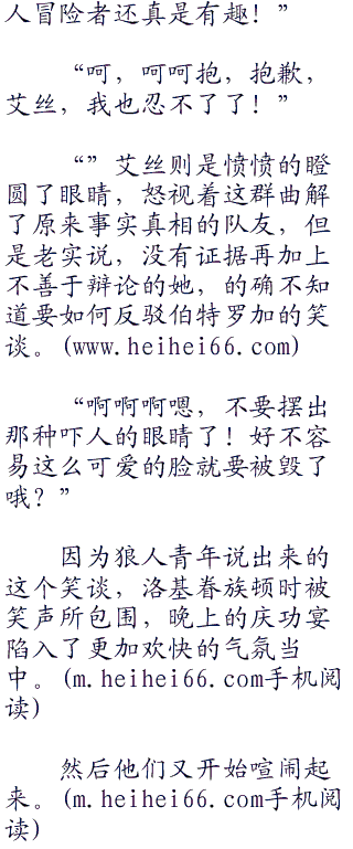 兽人的青年将泪逗留在眼中忍住大笑,而其他成员不禁失笑,坐在其它作为听着这故事的外人们也咬牙忍笑。