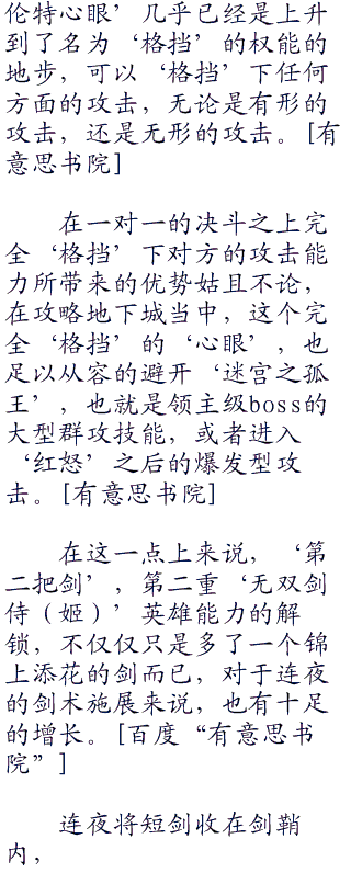 这种常人难以读懂的晦涩文字被刻画在剑刃上当然不仅仅只是为了装逼罢了,而是为了给武器附加上额外的特殊能力,来自工匠之神赫淮斯托丝的匠心独具的打造。