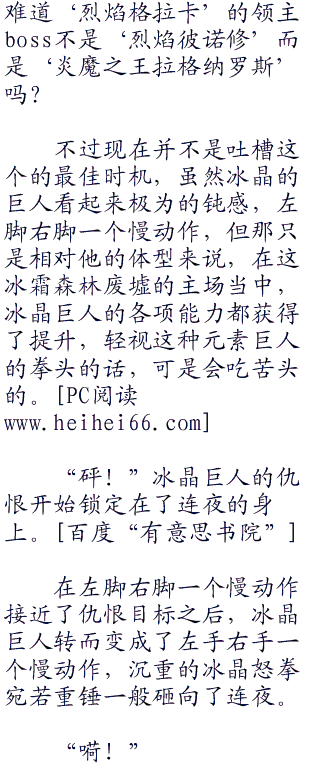 既然这边的‘冰霜(雷鸣)废墟’的怪物不是区区冰霜哥布林那么简单,而是防御力和攻击力都强大无比的冰晶巨人,那么想来隔壁那个被连夜称作了‘烈焰格拉卡’的烈焰森林当中的怪物,也不会只是烈焰哥布林这么好对付的经验宝宝了。