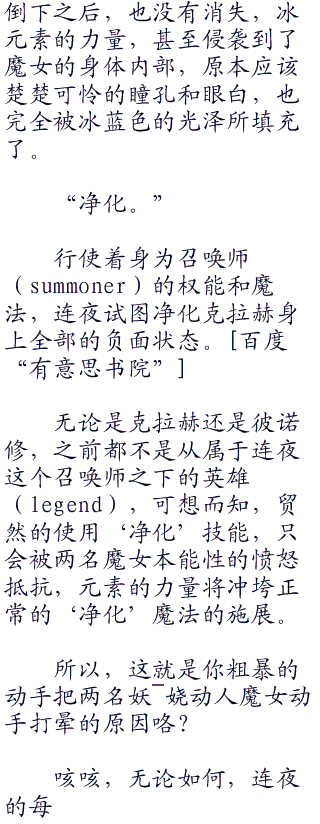 连夜可以感受得到,在命运技能的判定之下,克拉赫的等级由原本的lv6章 降到了lv4章 失去了一大部分的魔导力量。