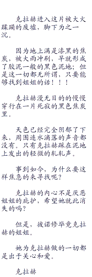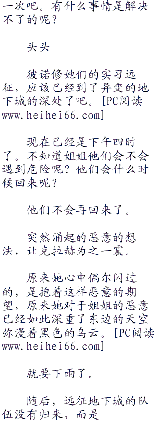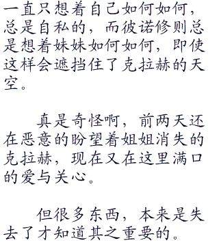 经过某个人的直接指出,彼诺修现在可以明确了:自己确确实实从未关心过克拉赫的真实想法,她总是一厢情愿的给她庇护,让克拉赫处于自己的羽翼之下,而认为妹妹应该对此理所当然的感到幸福和感恩。有∵意∵思∵书∵院