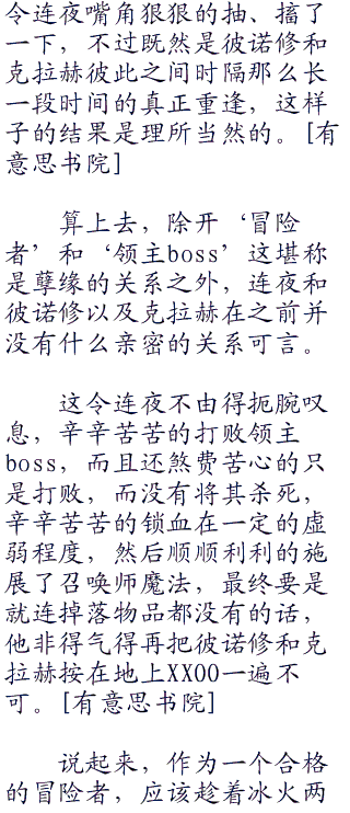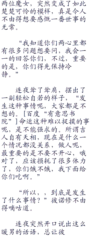 连夜看着身前两个明明在不知不觉间度过了千年岁月,却像个小姑娘一样哭着鼻子的魔女,不知道该作何感想。