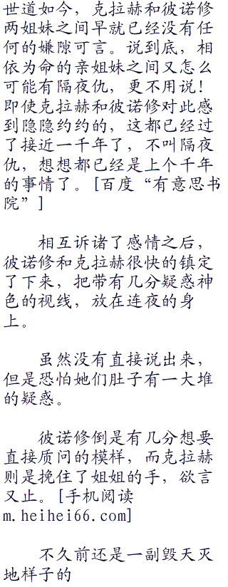 命运交错的姐妹,千年尘封的过往,看着抱在一起真情流露的克拉赫和彼诺修姐妹两,此时不哭不是XX人啊。w.ww.heihei6 6.co.br />