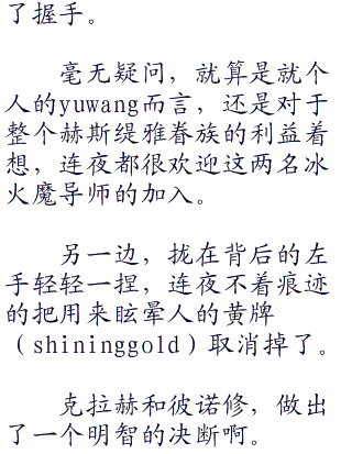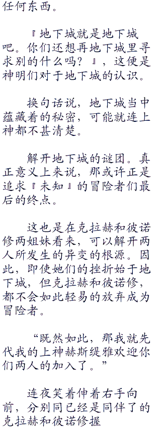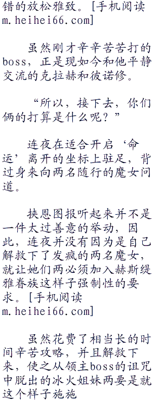 再者,反正从地下城‘远征’归来的这段时间内,姑且还有慢慢对话的时间,和两名恰好在他的审美观内的魔女对话,对于刚刚结束了相对艰辛的boss战的连夜来说,也算是一件不