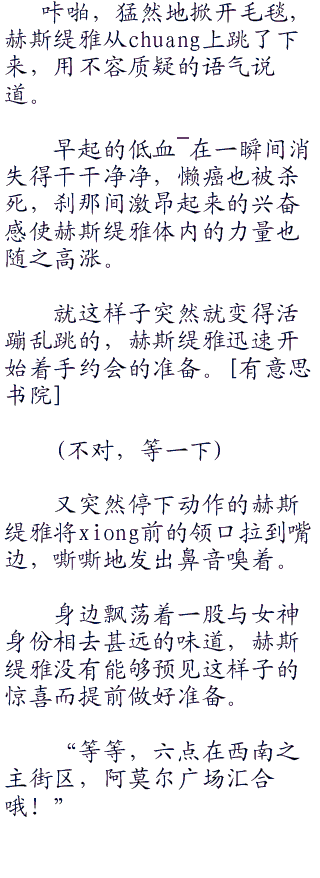 带着如此愤懑想法的赫斯缇雅,度过了一个并不美好的夜晚,同时就连早上起chuang的时候,也不免出现低血压的无精打采。有^意^思^书^院