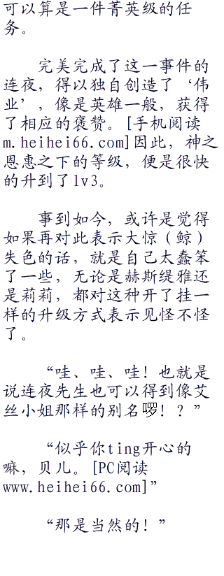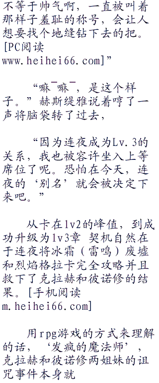 “『神会』,就是那个呀。”似乎是发现了十分有趣的事情一样子,连夜一边说着一边笑了起来。 “『神会』?”克拉赫歪了歪脑袋好奇的开口问道,一千年后的世界,有许多的规则是她们姐妹两所不知