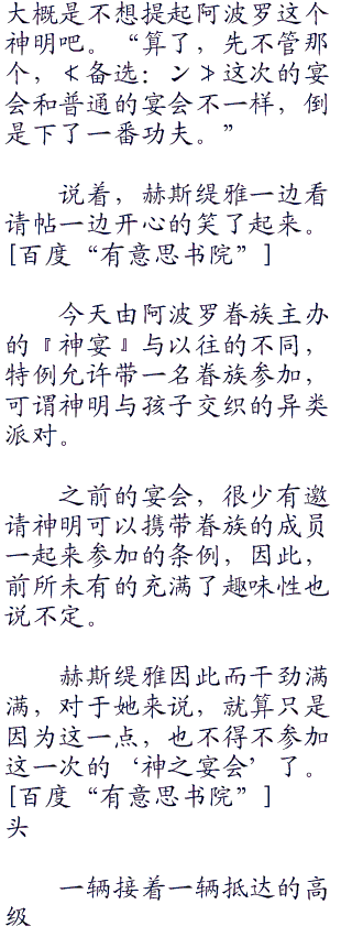“呃,这个是,请帖,阿波罗大人要开办『神之宴会』,如、如果有空的话,就请,哦不,其、其实不来也是可以的”