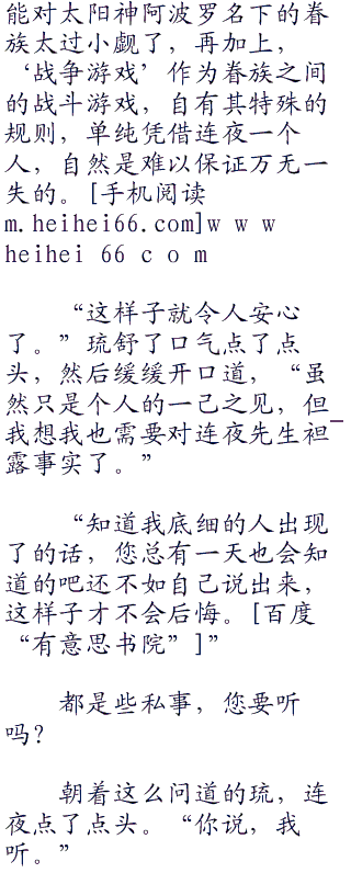 虽然琉的脸色看似心情十分的平静,但是无论是从她这番话语的字里行间,还是琉过去给自己带来的印象来说,连夜都很清楚,虽然嘴上会用各种方式开脱着,但琉利昂是一个非常重视感情的少女。
