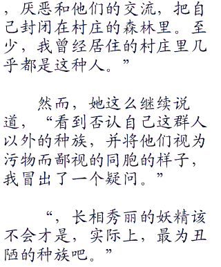 本来应该是高贵美好的代名词的妖精,不惜一切代价的复仇。