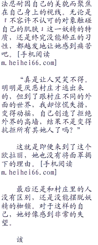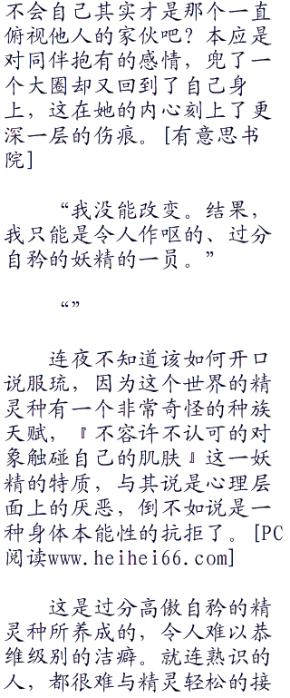 在对自己所属的种族怀有荣耀感的村庄里的精灵中,只有她怀抱着疑问和厌恶。