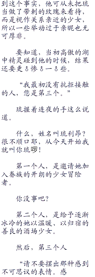 或许也不只是她罢了,精灵王族的里维莉娅,以及半精灵的埃伊娜,所有抱着不同的想法来到欧拉丽开始新生活的精灵或者半精灵,都和那些古老的森林一般顽固的精灵种有着不同的,鲜活的思想。