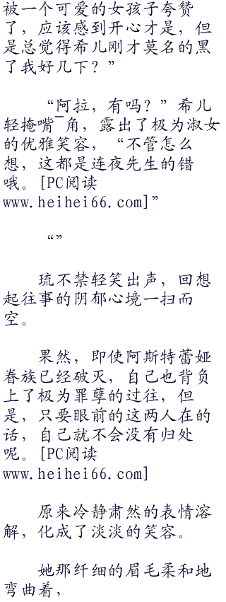 希儿眯着眼睛微笑着,认同了琉的论断,不能够再同意的拍了下手掌,“虽然又是花心大罗卜又喜欢被动招惹是非,与其说是绅士,倒不如说是大绅士(hen~tai~),又是鬼畜又是抖S,在关心别人之前必须抖S否则不舒服斯基,但,,连夜先生是个值得尊敬的冒险者呢!”