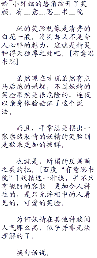 虽然看似是一个‘平平无奇’的街娘,但是希儿弗洛瓦似乎在观察冒险者的特征上有一双很是明亮的慧眼,虽然不知道这是针对希儿所观测的全体冒险者,还是说只是特定为连夜一人罢了。有 ■意 ■思 ■书 ■院
