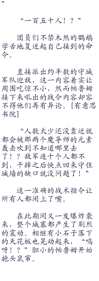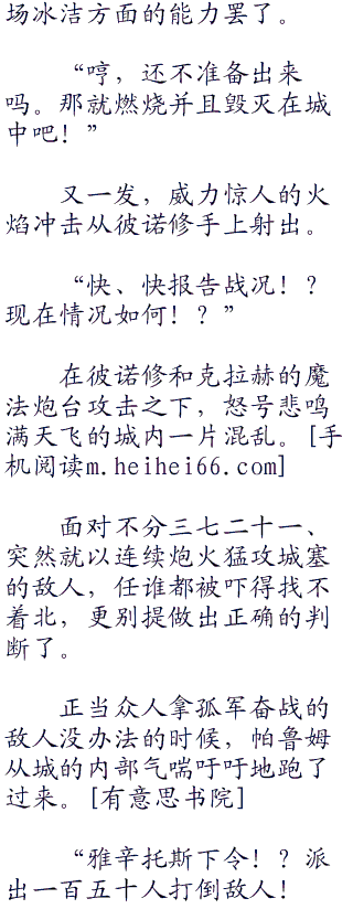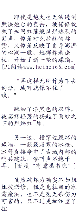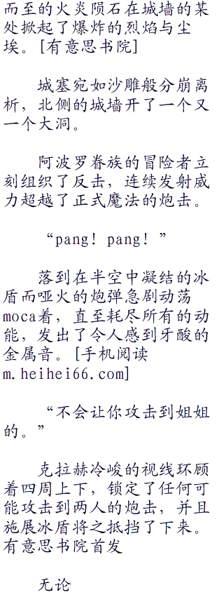 细长的冰箭,以及厚重的烈焰陨石,这些攻击在将厚重的城墙贯穿的同时,名副其实地将之变成了禁地。有\意思.书院。 w ww .hei.co br />