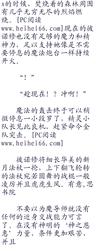 面对以超越常人的敏捷神速的突袭而来的精灵小队长,彼诺修将新月法杖一横,对准了他所来袭的方向,尝试将火焰的魔力,施加在敏捷能力出类拔萃的他身上。<a href="hei." target="_blank">hei.</a>
