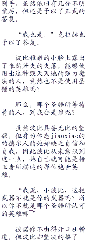 随即,‘圣锤之毅,波比’将砸下去的长柄圣锤从容的收回,刚刚幻化出巨大光影之锤的圣锤恢复了原本的样子斜搭在了小波比的肩上,那副游刃有余的姿态,很难令人相信她是一个小个子的约德尔人。