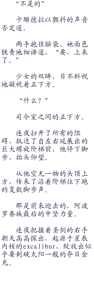 连夜通过空中走廊进入了塔内,接着便按照‘命运’所惊鸿一瞥下的大致路线前进着。