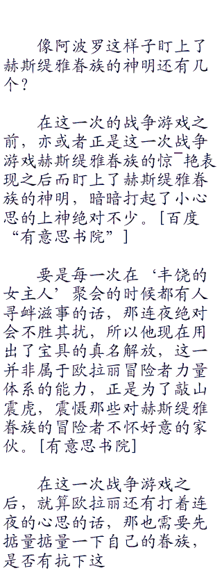 因为无趣而降临欧拉丽的神明都是怪有趣的家伙,赫斯缇雅、洛基,一个个都没有神的正形可言,唯一稍微留有一点神明的沉默与威严的,恐怕就只有赫淮斯托丝了。有 ╩意 ╩思 ╩书 ╩院