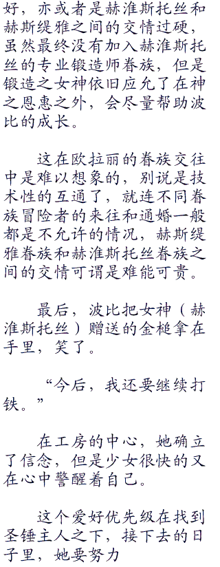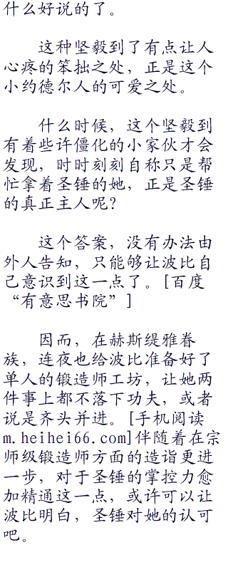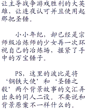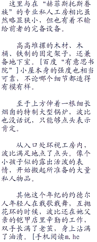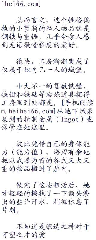 从打开门站在门口审视着工坊内部的波比的小脸上,漏出了无邪的笑容,作为一个铁匠而拥有自己的锻造工坊,并且还是在大型阁楼后庭的独立小屋,对于波比来说,简直就是无上的乐园了。