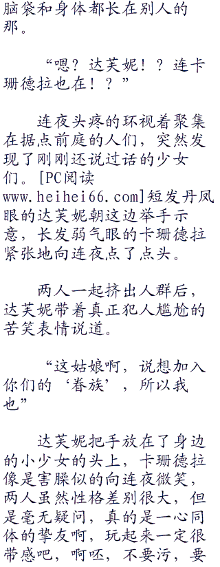 想到这里,连夜朝寡言沉默得宛若人偶一般的小少女露出了治愈度+5的笑容,一直以来,因为‘预知梦’的朦胧预言效果而被外人误会和不理解的她,想必也是过着相当辛苦的生活吧。