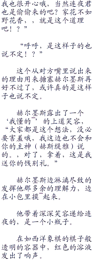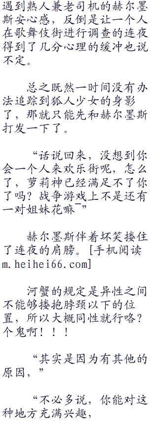 眼前的赫尔墨斯显然就是其中的代表,对方笑眯眯的,可耻的承认了这一点,令连夜对他这幅派头也无从诟病了,毕竟,就从表面上来说,他现在也是泡花街的老司机啊。