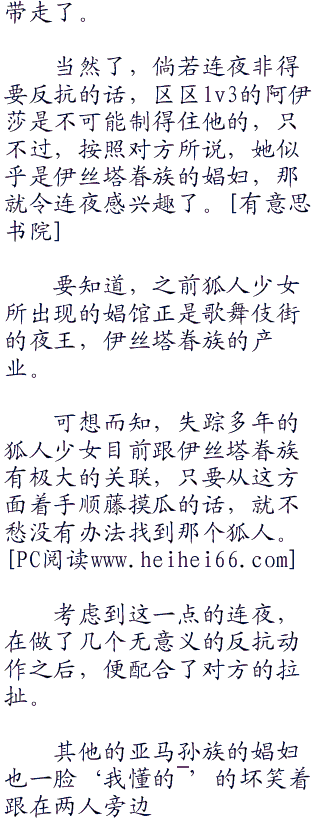 可是,动作迅速的少女(亚马逊)却不知何时绕到他的身后,从连夜的手中抢过了某个关键的道具。