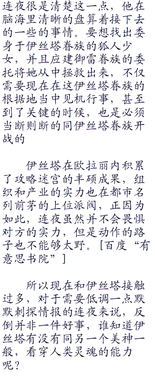 正如当初回应芙蕾雅一般,连夜正视着对方,与其说是被魅惑了,倒不如说只是正常的平视着与自己交流的对象而已。