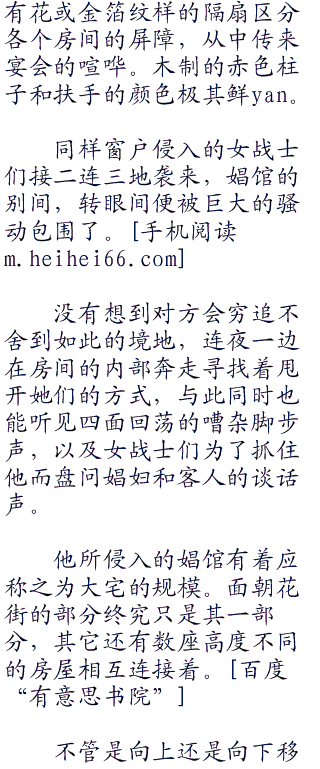 更多的娼妇们像是在重复刚才的情景般出现在连夜的面前,而并没有下重手想法的连夜,只好再一次飞檐走壁,换了另一条道理。