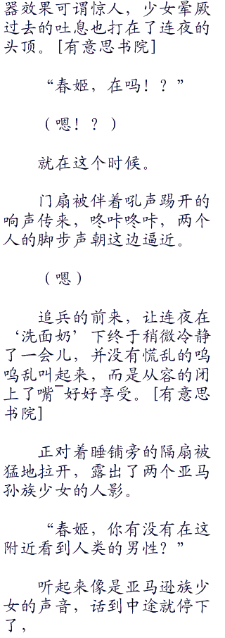 跟之前的阿伊莎相同,三条乃春姬手法笨拙地骑到连夜的身上,试图把他的动作封印住,当然,看得出这或许是第一次正式实践的缘故,和技巧数量的阿伊莎丝毫无法相提并论。