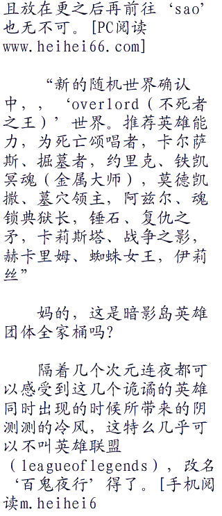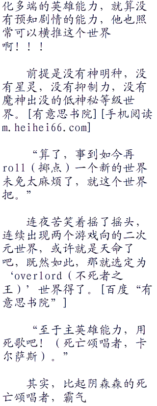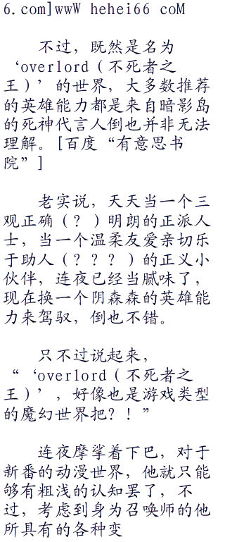 其实,拒绝了‘SAO’也并非完全因为连夜的恶趣味,想要欺负一下刀妹(刀锋意志,艾瑞莉娅),化身男刀,掌控刀锋意志那自由灵活的‘传世之剑’倒也是一次不错的体验。有 ^*意 ^*思 ^*书 ^*院
