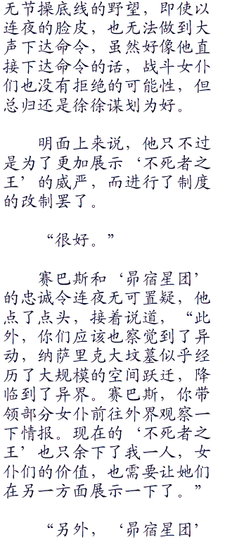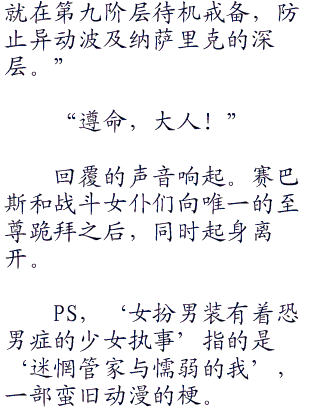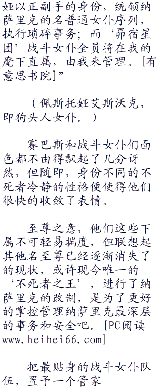 除了眼前的六人之外,还有一名狗头人女仆负责统率除了战斗女仆之外在纳萨里克大坟墓里工作的名普通女仆。