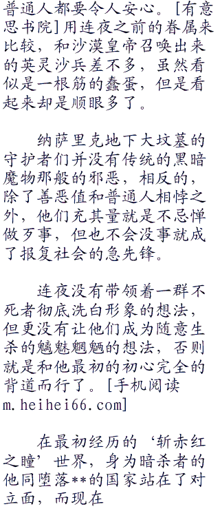 同纳萨里克的不死者们的初次会晤,他们的表现,令连夜无可挑剔。