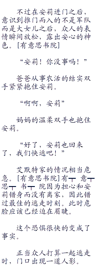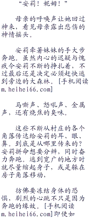 安莉眼前的村民伴随哀号瘫倒在地,被接连刺出的剑给予致命一击。有 ╗意 ╗思 ╗书 ╗院
