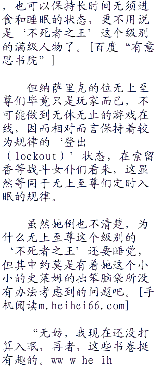 从理论上来说,不死者亦或者任何身体的内能达成了完美循环的武者都是可以做到不眠不休,以及辟谷这种听起来高大上的能力。内应五行循环,外应天地灵气,自然无须通过睡眠这种方式来补足体内的精气神。向索留香这种史莱姆级别的小怪物,一旦等级到了+以上之后