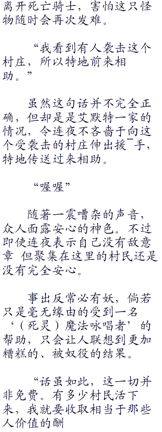 对连夜的意念产生反应,死亡骑士接受命令的回应传来。