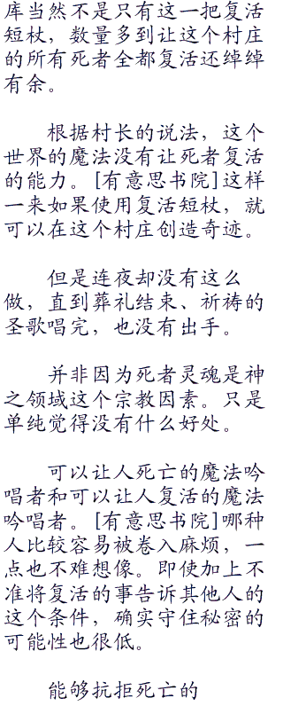 葬礼在村庄近郊的共同墓地进行。有↙意↙思↙书↙院墓地是在一个由破旧栅栏围起来的空地,里面竖著好几个刻有名字的圆形石碑。