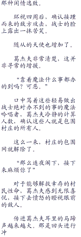 防守战更是愚昧的作法。如果是石造房子,或是坚固的城寨就算了,以木制房屋来抵挡魔法实在是自寻死路,只会被打成筛子。