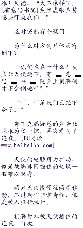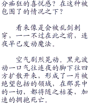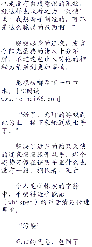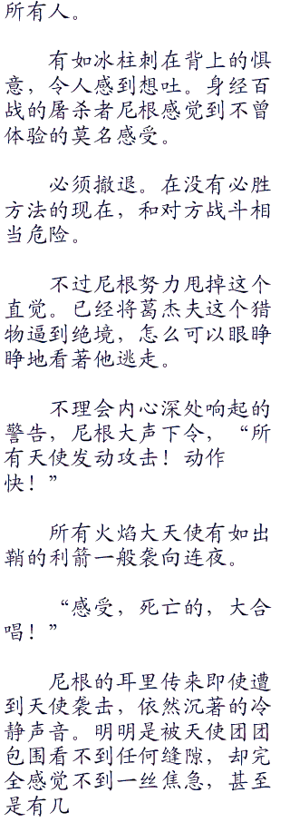 没错,连夜只是没有采取任何行动,只是让天使的剑刺向了自己。咏唱魔法、闪避、防御,或是由随从抵挡,什么事都没发生。