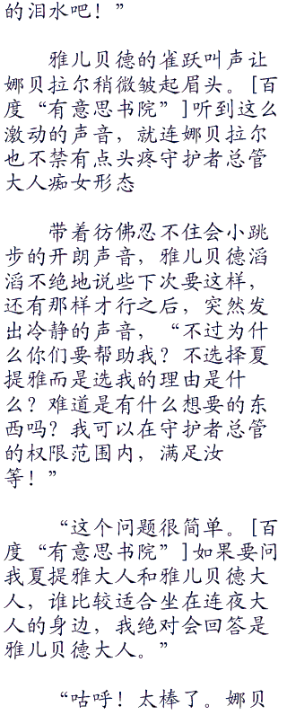 雅儿贝德郑重其事的命令使得娜贝拉尔头上冒出了问号,心想‘这是值得命令的事吗?’