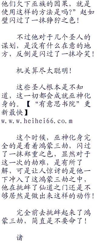 第1640章 各自的好处,涅盘 混沌记忆! 混沌记忆! 盘古元神印记地阿莱最为珍贵的东西,就是对于混沌记忆,以及盘古大道的参悟! 这些都是被赵如壁以及几个化身吸收! “可惜了,可惜了,盘古元神三分,我得到的不过是元始尊这一份印记!”赵如壁修为最高,率先第一步,睁开眼睛,眼眸深处,闪烁着奇妙的光芒,身上更是出现了一道一道的符文! 盘古的大道之体,是对于他来拥有莫大的作用! 这对于他的先盘武之躯,拥有印证的作用,不过他得到了好处,巫盘得到的好处更加的大,那演化出来的大陆,变得更加的庞大,出现了空大陆,还有海洋,更是出现了生命的迹象等等,这都是由于巫盘获得了一部分盘古元神之后,相当于是自己获得了元神,这些生命都是他的元神显化而已,现在这些元神十分的虚弱,可是一旦真正的孕育出来了完美的生命,最后回收回去的时候,巫盘必然是可以成为第二个盘古! 盘古以力证道,绝对是混元圣人之中的第一人! 不过赵如壁他们的道,已经是成型了,获得好处,不过是印证自己而已! 相反,获得好处最大的,绝对是要属于元始王了! 扶桑岛! 元始王头上的三花,一下绽放出来了,他是按照这个世界纯正的仙道修炼的,这三花绽放,是预示着即将进入金仙的境界,如果可以从三花之中,孕育出来道痕,就是意味着他进入大罗金仙的地步! 可以从三花之中,斩杀出来一个三尸化身,就是进入准圣的境界! 三花绽放,一道一道不朽源质,融合进入了元始王的肉身与元神之间,这还不死最为重要的,是最为重要的是在三花深处,孕育的元始仙道,都是化作了一颗巨大的道种,在不停的闪烁,吸收着庞大的道气,不停的进化起来了! “哈哈哈,终于是完美的孕育出来晾种了,这元始尊掌握的三分之一盘古元神印记,自然是关系到了他的元始仙道,元始大道,果然是给于了我莫大的好处,我一直从通道人这儿得到的上清仙道,并不是十分的完美,现在得到了玉清仙道的雏形之后,两者融合,终于是完全催动了元始道种的诞生,我就是孕育出来真正的元始仙道,是诸般的仙道,都回归与我!” 元始王兴奋到了极点! 进入了封神世界之后,他的实力倒是成为了众人之中,最为虚弱的,现在终于是一下子达成了金仙的境界,三花绽放,尤其在扶桑岛之上,他绽放的三花,是让许多仙道人物都是感觉到了! 许多修炼有成的,不知道为什么,他们元神之中传来了一阵阵的欣喜以及畏惧的感觉! 倒是与元始王相交十分不错的截教门徒,都是前来拜会起来了元始尊! 要知道可以修炼成为金仙的人物,不论是什么人物,都是一方豪杰,君不见,阐教十二门徒也不过是金仙而已,可想而知,这是多么的珍贵,其实金仙已经是明悟了一部分不朽之道! “恭贺元道友!” 三仙岛以及赵公明最先前来恭贺! 就是连多宝道人都前来了他的扶桑岛,带来了不少的礼物,多宝道人作为截教的首席大弟子,自然是知道截教的良莠不齐,现在这么一个人才,自然是想要招揽的! 他也准备将元始王介绍给通道人,准备引他进入截教! 尤其现如今多宝道人也看出来了阐教的封神,带来了一系列的问题,他师傅十分耿直,认为三清一家,浑然不知道截教势大,已经是让其他人都容不下了,何况是截教没有镇压气阅宝物! 截教只有诛仙四剑,是难以真正的镇压大教气阅! 所以多宝道人在有意无意之间,为截教收敛起来了气运,这也是多宝道人如茨不凡,也不会在诛仙阵被打破之后,他被老子擒拿走了,准备用来对付西方教的! 由此看得出来多宝道饶不凡之处! 对于截教的仙冉来,元始王自然没有什么在意的地方,与这些人谈玄论道,吸纳起来了上清仙道的精华! “还没有恭喜道友,你的实力进步斐然,不如我引荐与你,进入我截教,成为我截教的正牌弟子如何?”多宝道裙是十分看好元始王,认为只要给他足够的时间,必然是可以成为截教的中流砥柱! “那么多谢道友了!” 元始王倒是不在乎什么封神之战,这封神之战就是他的布局,他本意就是在封神大战之中,谋划一切,阐教有着他的布局,截教还不如让元始王亲力亲为,毕竟他要谋划上清印记不是吗? 就在他们开起来了这一次的道会之余,突然之间,虚空绽放出来了无量光! 无量光! 无量寿! 仿佛虚空都是被一股奇妙的光芒照耀,接受这光芒照耀之下,他们都觉得元神清明了一般,同时他们也得到了一个讯息! “涅盘?” 多宝道人眉头一挑,“这就是涅盘吗?好奇妙的道!” 他们都是看到了虚空,出现一座灵山的迹象,须弥山完全的展现出来了! 在这一座灵山之上,他们看到了一个人,浑身燃烧出来了一团团的火焰,在众多的佛子,他们念经祈祷之下,化作了虚无,只剩下了一颗偌大的舍利子,在虚空绽放出来了一道一道的光芒! 这当然是在须弥山阿弥陀了! 不仅是赵如壁等人从这盘古元神印记之中,得到了莫大的好处,连阿弥陀都获得了许多的好处。 他最为直观的体现,就是开始了涅盘! 一直以来,阿弥陀的修为是难以打破桎梏,融合进入这个世界,现如今他得到了这些感悟之后,终于是完成了蜕变,将偌大的须弥山,完全具现化出来不,还是重新的焚烧自己残躯,最后蜕变,是之为——涅盘!