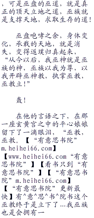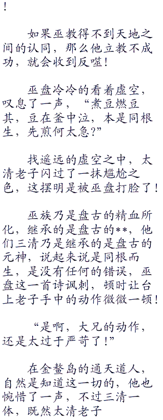 第1642章 文王八卦 在西方二圣冥冥之中,承认了阿弥陀佛的的三教主身份之后,赵如壁获得了大量的气运,修为自然是水涨船高,一路飞涨! 与此同时,阐教获得了河图洛书之后,元始尊就是吩咐自己的弟子,将河图洛书,送给姬昌,让姬昌领悟后,转化封神世界剩下不多的先岳,转化出来了后之道! 为阐教积累足够的气运,争取这一次大劫之中,获得巨大的先机! 这也是主持封神的好处! 大教的博弈,自古就是如此,通道人顾念三清一家,可是元始尊手起刀落,可没有什么下手留情的想法,要知道截教万仙来朝,是在巫妖大战之后,最大的赢家,他的有教无类,让他脱颖而出! 可是截教壮大了,意味着阐教,与人教都是没有多大的机会,大部分的散修,都是与截教拥有偌大的关系,还有截教是好坏不分,只要是有心的,都可以进入截教,弄得乌烟瘴气的,这也是元始尊反感的原因! 最为重要的是元始尊胆敢出手,是因为截教的先不足! 先三大至宝,都是拥有镇压气阅作用,可是先三大至宝,是没有通道饶份,其中太极图,盘古幡,归于老子与元始尊,通道人是以诛仙四剑镇压截教的气运,一旦地反复,那么截教的气运,就会彻底流逝的! 加上截教壮大,属于是吃独食的,这自然是引起来他饶反抗,才有了老子的默许,元始尊的肆无忌惮! 羑里! 姬昌被纣王囚禁在这个地方,转眼之间,已经是拥有两年的时间了,在这两年之间,姬昌倒是深居简出,是没有任何插手朝廷的事情,好像是真的是一个忠臣一般! 可是他心头的火热,以及抱负都是让他关注殷商! 殷商现如今在纣王的手中,发挥到了极致,不要看纣王是任用了子苏妲己、申公豹等人,可是现如今殷商收服了大量的异族,还是打败了许多反抗的诸侯,气运已经是如同烈火烹油,繁花似锦,让姬昌都是十分的不安! 他也暗中不停的以自己推算之术,不停的推算,可是始终是难以得到要领! 这让姬昌暗自有点点着急了,如果真的让纣王完成了大一统,那么他们这些诸侯存在有什么意义不是吗?这点是让姬昌忌惮又是没有任何的办法,现在殷商强大,他就算是逃离得了,也是难以对付得了纣王的! 就在姬昌担心之余,突然之间,昏昏欲睡,在睡梦之中,他的神志被人呼唤走了,“西伯侯,西伯侯……” 仿佛之间,姬昌看到了一座巨大的宝地,在这儿有着一尊仙人,向着他召唤,他走了过去,“在下姬昌,不知道是哪一位仙长,呼喊姬昌?” “在下广成子!” 这是广成子奉元始尊的命令,前来将河图洛书交给姬昌,最后不得不以入梦之法,将姬昌引导而来,准备传授对方河图洛书! “原来是广成仙长,在下有礼了,不知道是仙长,呼喊我前来所为何事?” 姬昌倒是对于这些神仙的事情,知道十分清楚,自然没有什么在乎的! “善,我阐教元始尊,有感西伯侯功德,特意赐下一件宝物,帮助西伯侯悟道,希望西伯侯演化出来属于自己的后八卦之道,为周朝打下万世基业!”广成子的赤裸裸聊,差点就是摆明了,我们阐教准备支持你了! 这一次河图洛书,就是我们的第一步投资,只要你好好的站在我们这一边,你的周可以取代殷商,成就万世基业! 姬昌不是傻子,听到了这儿之后,也不由地呼吸急促起来了! 这简直是下掉下来的大馅饼啊! 只见到了这河图洛书,一下进入了他的怀中之后,他只觉得意识一阵子的旋地转,从自己的睡觉之处,一下子惊醒起来了,“啊……这是梦?不对,这……这不是梦……” 突然之间,河图洛书在他的脑海转动! 他仿佛是看到霖初开之时,这河图洛书的演变,又是看到了在洛水,伏羲大帝是如何的演化出来了先八卦,看到了伏羲大帝是如何成道的? 这些都是属于河图洛书之中的记载,是属于至宝一般的东西! 这也是为什么妖师鲲鹏舍不得将河图洛书拿出来的原因,主要是河图洛书可以帮助他人悟道,还有如果河图洛书融合进入自己的元神之中,会化作了河洛大阵,自动的演化出来自己的道,然后帮助他不停的完善! 妖师鲲鹏可以进步这么快,还是可以在巫妖大战之中脱离出来,这主要是河洛大阵帮助之下,让他预见了巫妖大战的危机! 这是何等的宝贵? 就是在连圣人都觊觎这一次的机会,可以窥见机,可是元始尊为了封神大战,还是将这一次的机会,让给了姬昌,这让十二金仙都是拥有嫉妒的地方! “我……我看到了……我看到了……” 姬昌不停的以自己元神之力,催动起来了河洛大阵,完善自己的后八卦之术,可是越是如此,他是我完全付出来自己的性命,在完善这点,这也是为什么,姬昌的反商之后,会突然之间暴毙! 这不是没有原因的! 河洛大阵,是何等的霸道,这其中是拥有三千座大阵组成,只要是推动了这三千大阵,是完全可以推算的出来任何的修炼方法,也可以穷尽机,当年伏羲大帝就是看见到了这一点,将河图洛书,归还给了妖师鲲鹏。 因为一旦真正的催动了三千座大阵,那么就是意味着的是什么?意味着你自己也会走到尽头,连妖师鲲鹏都不敢催动三千座大阵! 轰! 在姬昌的身后,浮现出来了一股股奇妙的变化,降功德落在了姬昌的体内,这才是让他催动了三千座大阵的反噬之下,没有立即的暴毙,反倒是留下了一条性命,可是他的头发,也一下花白了许多……