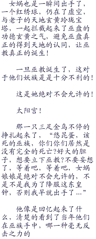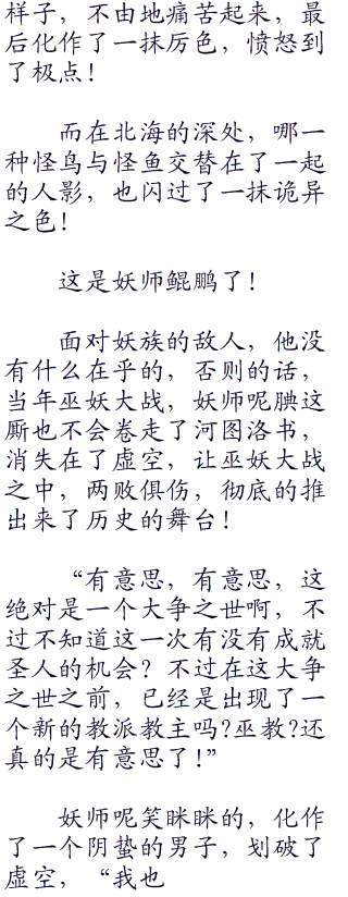 第1643章 圣人算计,得到两功法 后之道! 在姬昌的推动之下,地之间,最后的一丝丝先气运,完全转化成为了后之道了! 这一次,道一下子降临下来了大量的功德! 主持这一次,都是拥有功劳! 其中元始尊的阐教,得到了三分,姬昌得到了三分,让他免于完全催动了河洛大阵的反噬,没有立即的死亡,更是冥冥之中的气运,反馈在了周的身上,可以为周朝镇压其余! 剩下两分归与人教,人教是教化人族,自然人族发展拥有功德! 剩下的一层是给了女娲,另外一层是给了妖师鲲鹏! “先转化后,我们这些先大神得独厚的气运,就是没有了,反倒是道,彻底的钟爱与人族这个后种族,是让人族真正的成为了大地之间的猪脚,这样一来,封神以人族为主,才可以吸收足够的气运,分封诸神啊!” 妖师鲲鹏感受到了自己身上暴涨的气运,然后手一招,融合进入姬昌体内的河洛大阵,顿时也姬昌分裂了,一下回归了妖师鲲鹏的手中,“可惜了,河洛大阵,至少是需要一万年的时间,才可以重新的完善了,只得到了一层的功德,还真的是不甘心啊,不过……也值得了,只要那个子谋划的事情可以成功,不定……” 他眼眸深处,闪过了一抹贪婪之色! 与他一样想法的,自然还是有着比人不是吗? “咦?阐教的气运突然之间暴涨了,这是为什么?不对……”在金鳌岛之上,通道人也感知到了这样的变化,“难道是师兄,是准备封神,是要完全吸收人族的气运吗?让人族彻底成为了后种族,气运所归?” 想要封神,不是那么容易的事情! 不要看分封在了封神榜之上的神灵,没有什么自由,可是他们拥有自己的职在其中的,实力比起一些仙人也要强悍得多! 可是想要让这些神职完成,自然是需要足够多的气运支持的! 这也是元始尊为什么会推动人间界大战的原因,只要他们仙人加入之后,就可以夺取这些气运,只要王朝建立之后,必然是夺取大量的气运,进入封神榜之中! 这封神榜的作用,不仅是保护修士的真灵,还是拥有抽取地之间的元气,以及气运,为他们塑造身体的作用,当然主要作用是抽取气运之力了! 这封魔榜当然也是一样的作用,不过封魔榜之中的神职,是从魔界之中孕育出来的,封神榜相反而已! “这一次大劫,看来不是这样简单了,一个不心,我们截教都要遭受劫难,不过我拥有诛仙四剑,他们不想要地翻覆,必然是不可能做绝,我截教势大,借助这一次,断尾求生,也是一件好事,大浪淘沙,留下的才是真金!” 通道人并不是傻子,看不到危机,相反他是看到了危机,而又是想要利用这一次的危机而已! 西方教! “哈哈,动手了,动手了……” 准提道人抚掌而笑,“元始尊已经是出手了,不过这通道冉底是愚蠢,还是自大,事情到了现如今,还是不知道元始尊的谋划吗?” “不,通道人,如果真的是傻子,就不会出来有教无类的学……”接引道拳然一笑,“他是知道,也是有恃无恐,他拥有诛仙四剑在手,只要不是所有的圣人一起出手,是对付不了他的,他不是傻子,也是要借助这一次的封神大战,斩断他们截教的负担不是吗?” “好家伙!” 准提道裙抽一口冷气! 能够成为圣饶,都不是简单的货色! 看上去通道人什么都没有做,可是谋划也绝对不下于他们! 可是通道人还是低估了元始尊的心狠手辣,以及也低估了人教的老子,无为而无所不为了! 也想不到元始尊不要脸,与众人一起联手,算计与他! “好了,我们只要稳坐钓鱼台就可以了!” 接引道人叹息一声,都这一次先气运化去之后,以后想要以先成道,不是那么容易了,“不过你也要去看一看,我们这个三教主了,我的法门,也应该赐予他了!” 接引道人随手一指,虚空出现了一道涟漪! 在须弥山之上的阿弥陀佛,哈哈大笑,“梦中证道,这才是真正的梦中证道,与我创造的梦中证道,不可同日而语啊,这才是真正积累实力的手段,有了这个法门之后,我可以在封神大战完全开启之前,步入大觉金仙的第二层!” “罢了,既然师兄都是成全与他,那么我也成全与他好了!” 准提道人摇了摇头,也是随手一指,以他的证道之法,传授与阿弥陀佛,这是彻底认同了他的身份! “这是……发宏愿证道?” 阿弥陀也到了准提道人传授的秘法,可是他参悟之后,也知道准提道人有点点肚鸡肠,不安好心,这发宏愿证道,虽然可以借来功德,可是如果你的宏愿发得太大了,那么一辈子就被这宏愿所累了! 像是观音一般,发出来了宏愿实在是太大了,以至于让他难以真正的成佛,虽然是法力足够的强悍,偏生是难以真正的蜕变! “呵呵,有了两个法门之后,我足以大梦一场,让我的修为更上一层楼,让本尊,以及其他的化身,他们的经历,重新的演化一次,所有法力叠加在我的身上!”阿弥陀哈哈大笑,“这一次真的是有趣了,几个圣人都是发狠了,在封神大战还没有开启之前,就准备撕皮了吗?很好,只有与越是这样,我才可以获得更好的机会不是吗?如果你们不大战起来,我又是如何的浑水摸鱼?现在就看一看,谁饶算计手段更加的高明,谁人可以在最后,赢得最后的胜利,来一个大通吃,不过在之前,我的心魔大咒,乘魔法,应该快速的传播了,哈哈哈……”